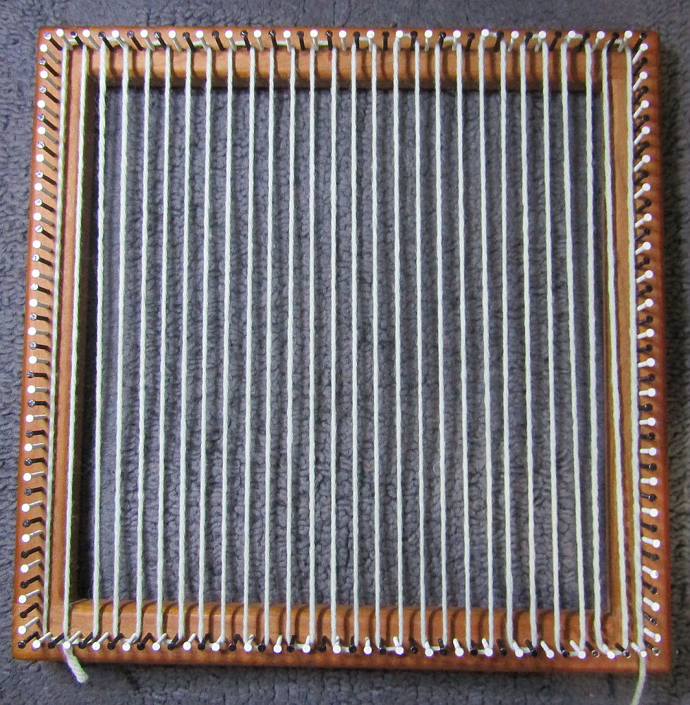 Because your Weave-it type loom is missing some corner pins, unlike the Multi looms which do have those corner pins, you have to make a few modifications for this type of weaving on your loom. It’s fairly simple and I have taken lots of pictures. We’ll go step by step.